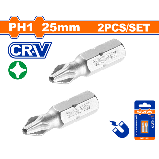 Juego 2 Puntas Destornillador Ph1X25Mm Crv WADFOW WSV1K11