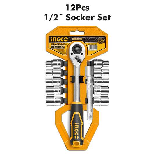 Juego De Dados M1/2 12Pzs 10-24Mm Con Ratchet Y Extensión INGCO HKTS12122