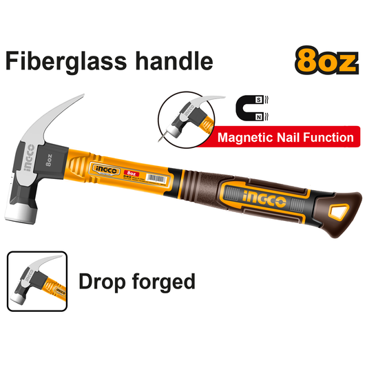 Martillo De Uña 8Oz Mango Fibra De Vidrio INGCO HCH81008