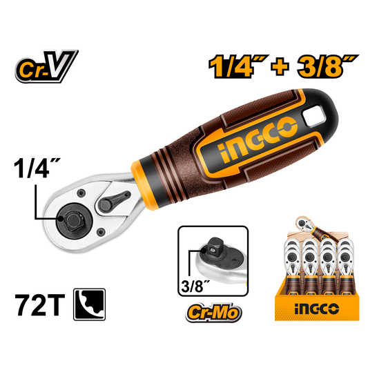 Ratchet 1/4 - 3/8 72T Crv Largo 140Mm Ingco HRTH081438
