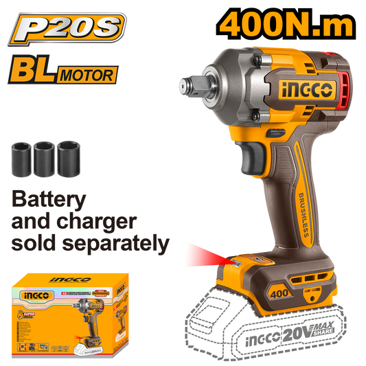 Llave De Impacto 20V M1/2 400Nm Brushless INGCO CIWLI20401