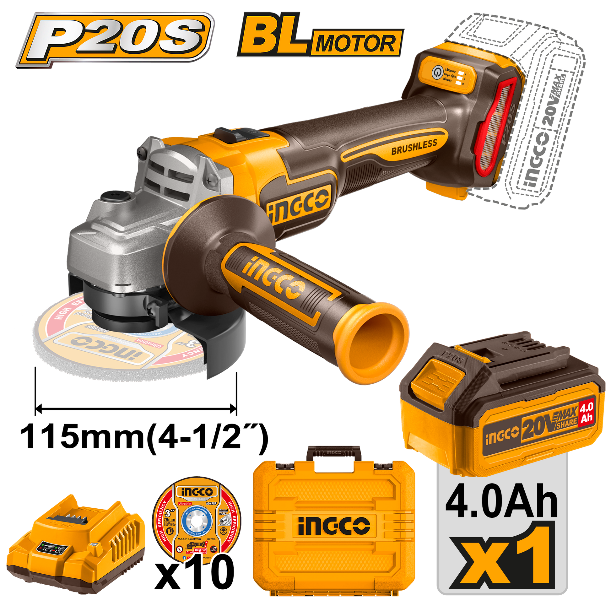 Pulidora 20V 4-1/2 Brushless 10 Discos 1 Bateria 4Ah INGCO UCAGLI211541